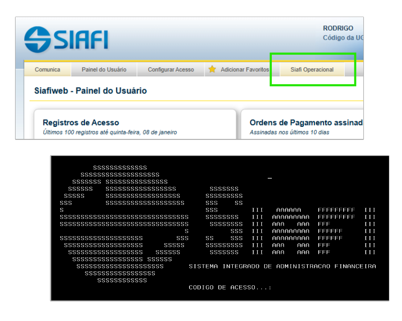 2ª Uma nova janela irá se abrir, na qual você verá a tela de abertura do SIAFI OPERACIONAL e um espaço onde você deve colocar o código numérico que você copiou, como mostram as figuras abaixo.
